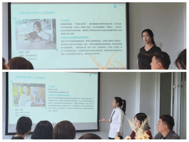 在本次资助宣传大使选拔活动中,孔子青年社区冯思语、魏佳祥、曹超、邱容娣、邹越、王艳等6名同学脱颖而出,成为孔子青年社区资助宣传大使。社区主管陈振星及社区辅导员向本次遴选的6名同学授牌,全场30余名师生共同见证了这一时刻。邹越和王艳两位同学,代表6名资助宣传大使表达了自己对资助工作的理解和对未来资助工作的期望。