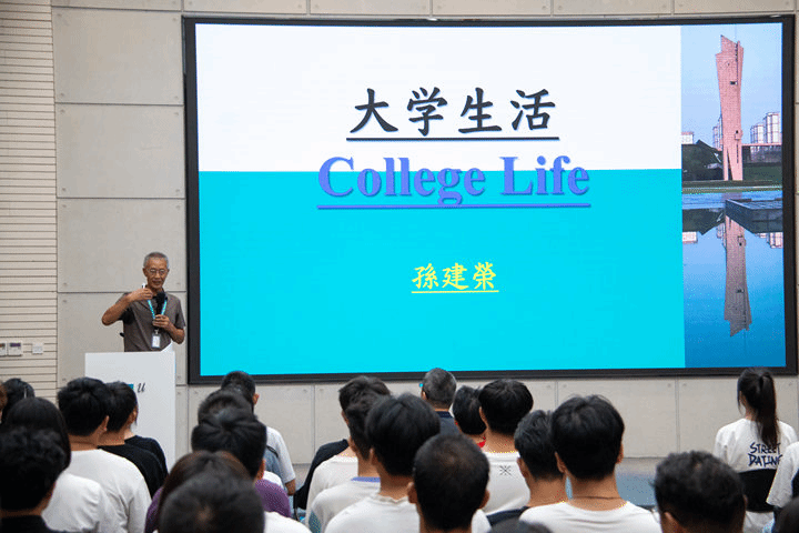孙建荣副校长为新生们讲授了题为“大学生活”的开学第一课。首先他用流利的英语向同学们提出了三个问题: