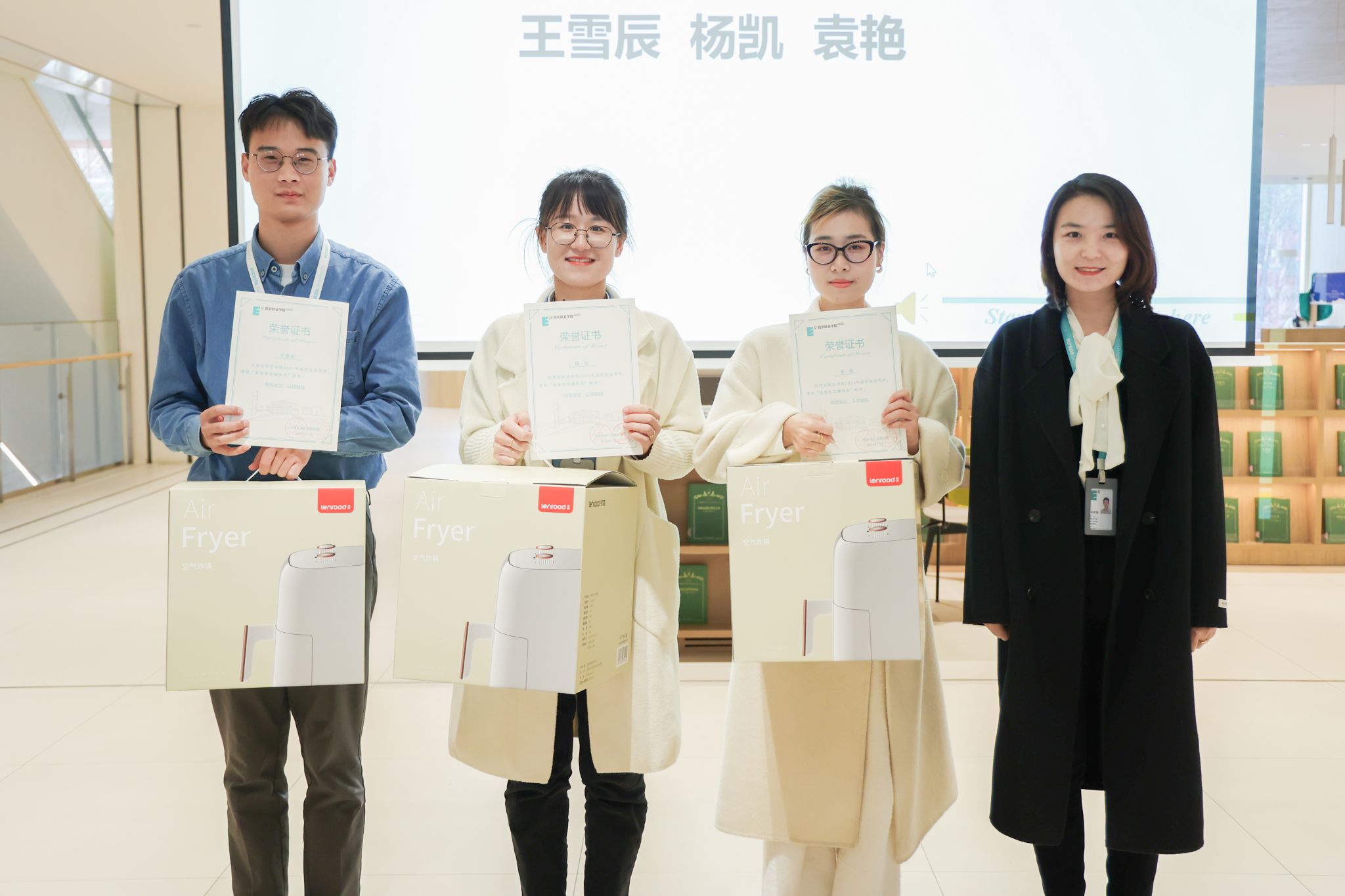 社区主管张煜昊老师为最美宿舍一等奖颁奖