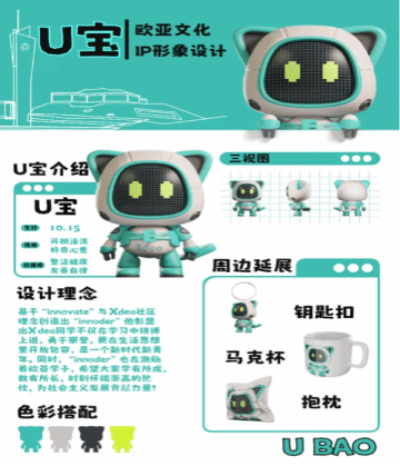 2022年10月,王光宇首次接触Blender后,便被这款软件深深吸引,产生了浓厚兴趣。在欧亚学院“以雇主为导向,以学生为中心”教育理念的指导下,他积极深入雇主企业,通过不断地在实际业务场景中检验所学知识,迅速将理论转化为实践能力。凭借对兴趣的笃定热忱,王光宇不仅在学习过程中持续精进技艺,还勇于尝试,主动在电商平台上承接三维动画制作项目,成功将创意转化为商业价值,展现了当代大学生在专业领域的创新精神和实践能力。在技术和阅历的不断提升下, 2024年11月27日第五届创意设计大赛,王光宇制作出了Xdea青年社区的IP形象“U宝”,斩获大赛“二等奖”。