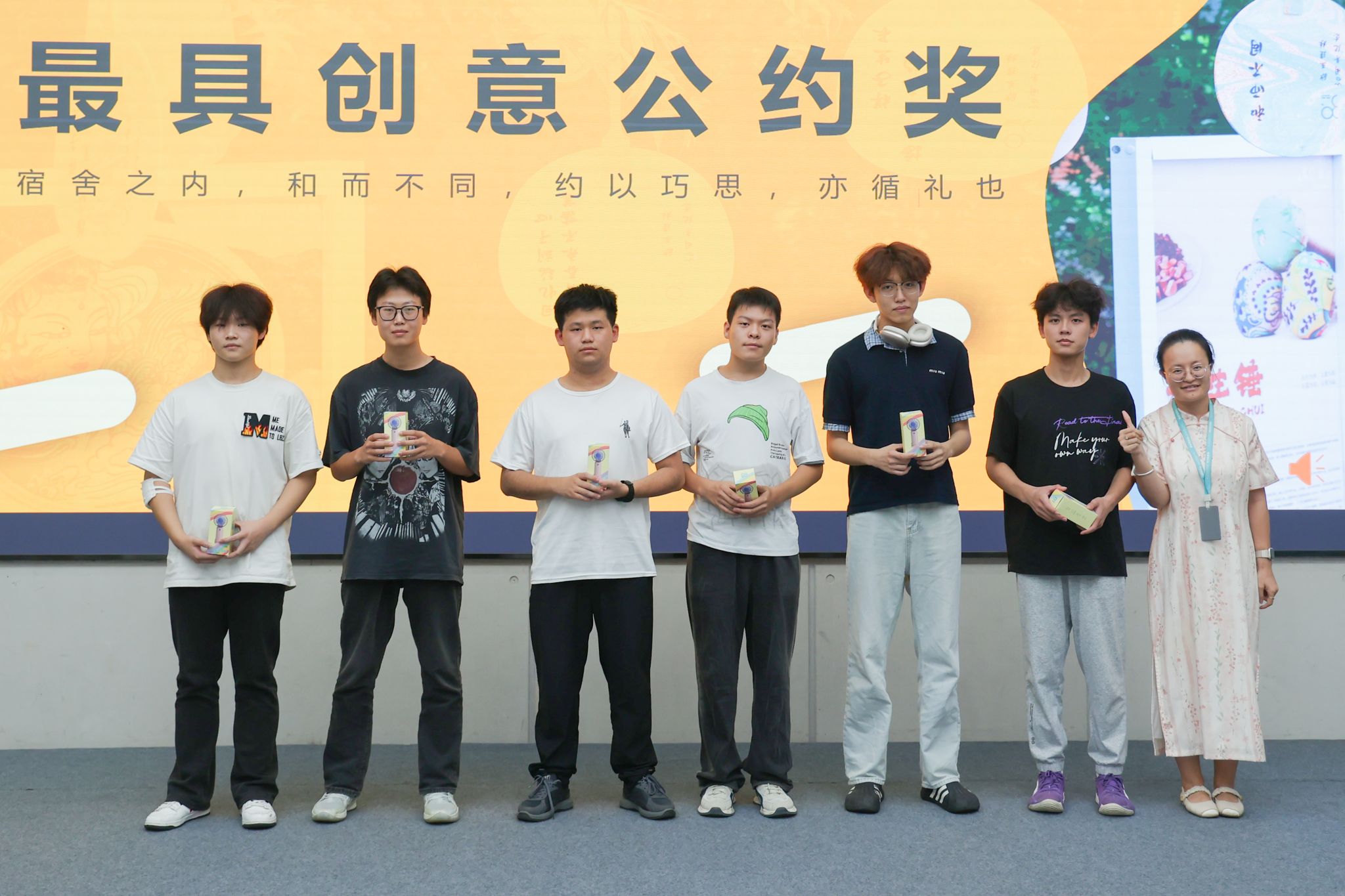 以和立舍,以礼相彰;青春共寓,志合道昌。 作息有节,动静相谅;书香沁室,雅洁自芳。 论道争鸣敬异见,躬行互助暖如霜。 愿吾辈:各美其美,美人之美,于方寸间见青年胸襟, 于滴水处汇社区汪洋。 和而不同,契若金兰,此约既立,勖哉共行!