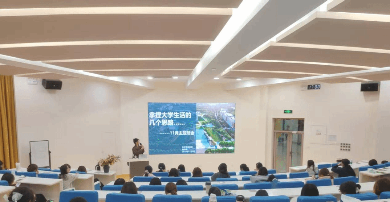 陈满晨老师以一段精心制作的视频自然开场,将同学们带入“无限·成长”的主题氛围,并进一步串联起Ivy青年社区“无界”文化,使理念更易被理解和接纳。她重点讲解了“第二课堂”的重要性,通过真实案例展示只要主动参与、合理规划,积累学分并不困难,并指出第二课堂成绩在奖学金、评优评先中的决定性作用。在校规校纪部分,她以严肃而必要的提醒,强调课堂纪律、宿舍卫生、夜不归宿等行为的红线,帮助同学们明确底线意识。面对大三学生的现实需求,她从考研、考公与就业三条路径提供时间线与策略建议,为处于选择十字路口的同学们提供清晰方向。她还对表现突出的同学进行表彰,以榜样力量激励更多成长。最后,她以“鲶鱼效应”为例,通过压力机制解析与调适技巧分享,帮助同学们提升自我管理能力。在互动交流中,大家分享学习诀窍、情绪管理经验,现场氛围温暖、有力量。