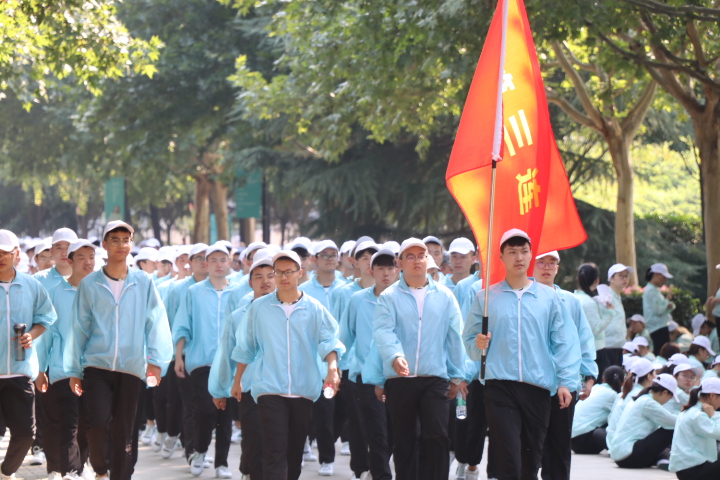 小编发现新生们都很认真地踢正步、站军姿、练习走方队