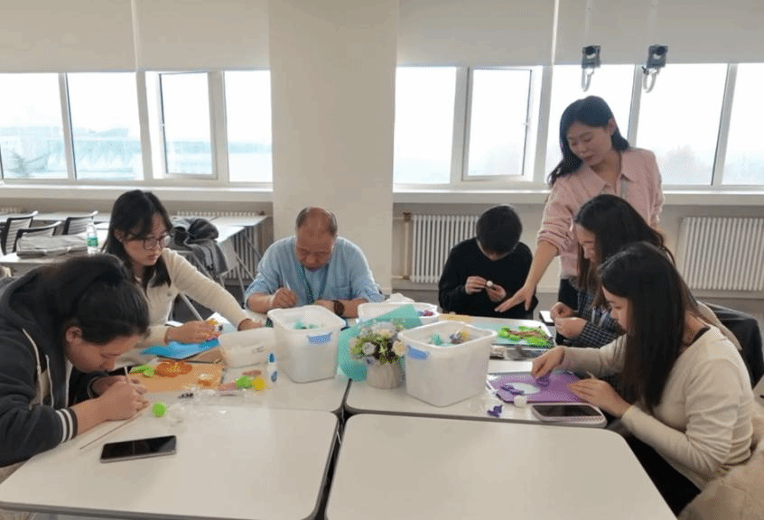 “如果把自己比作一种植物,你会是什么?”有人把黏土搓成细细的茎,捏出几片舒展的叶子,说这是迎风生长的白杨,像每次帮学生解决难题时的坚定;有人捏出圆滚滚的多肉,点缀上粉嫩的小花,笑称要做一株“佛系多肉”,和学生一起慢慢磨合,慢慢成长。指尖的按压与塑形,是情绪的释放与梳理。那些说不出口的压力,藏在心底的柔软,都在黏土的变化里,慢慢有了清晰的形状。