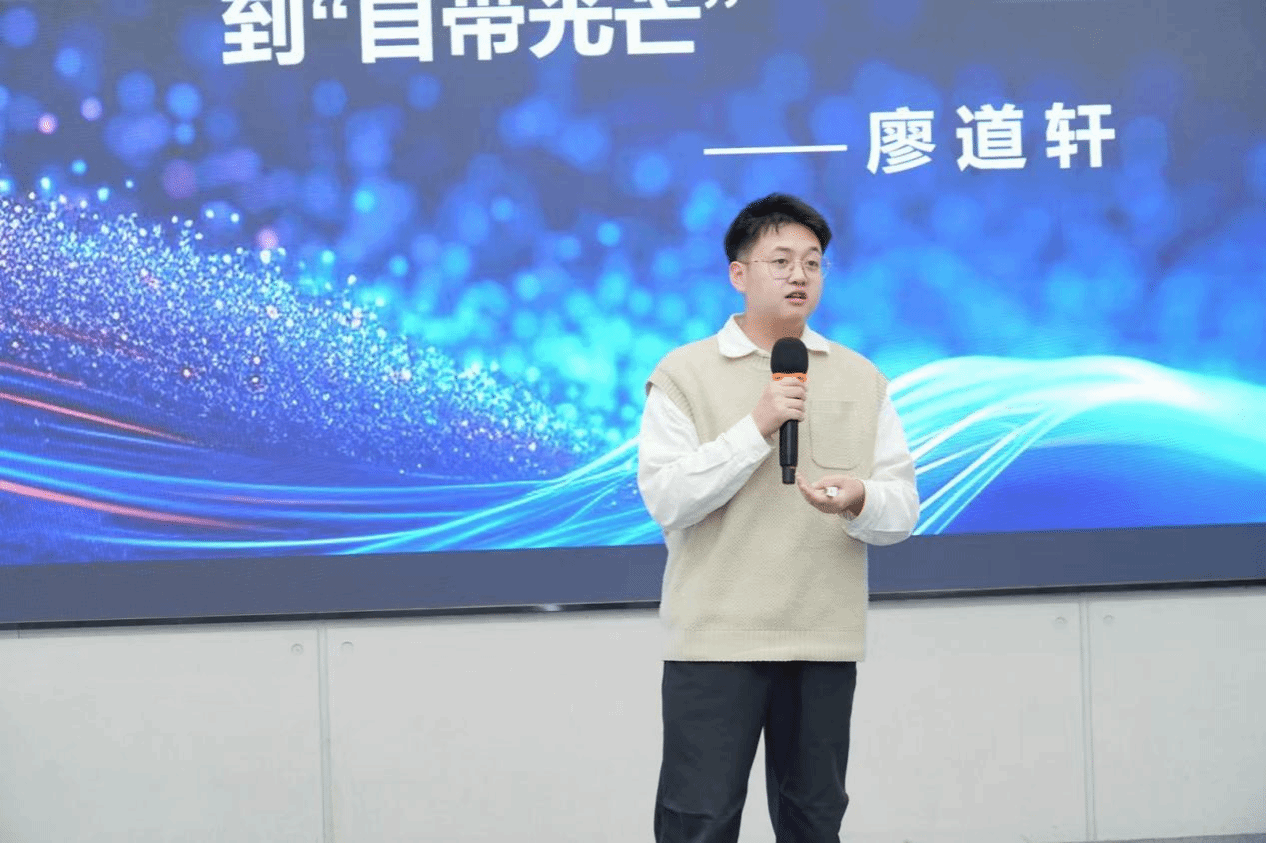 2025级同学王瑞基同学向大家分享他入学三月对追光的感悟:在师长同窗陪伴下追光,通过诗词大会收获成长,认为勇敢尝试、认真生活、温暖互助皆是循光之路,愿与大家共赴精彩,更寄语追光者积蓄力量,终会散发自己的光。