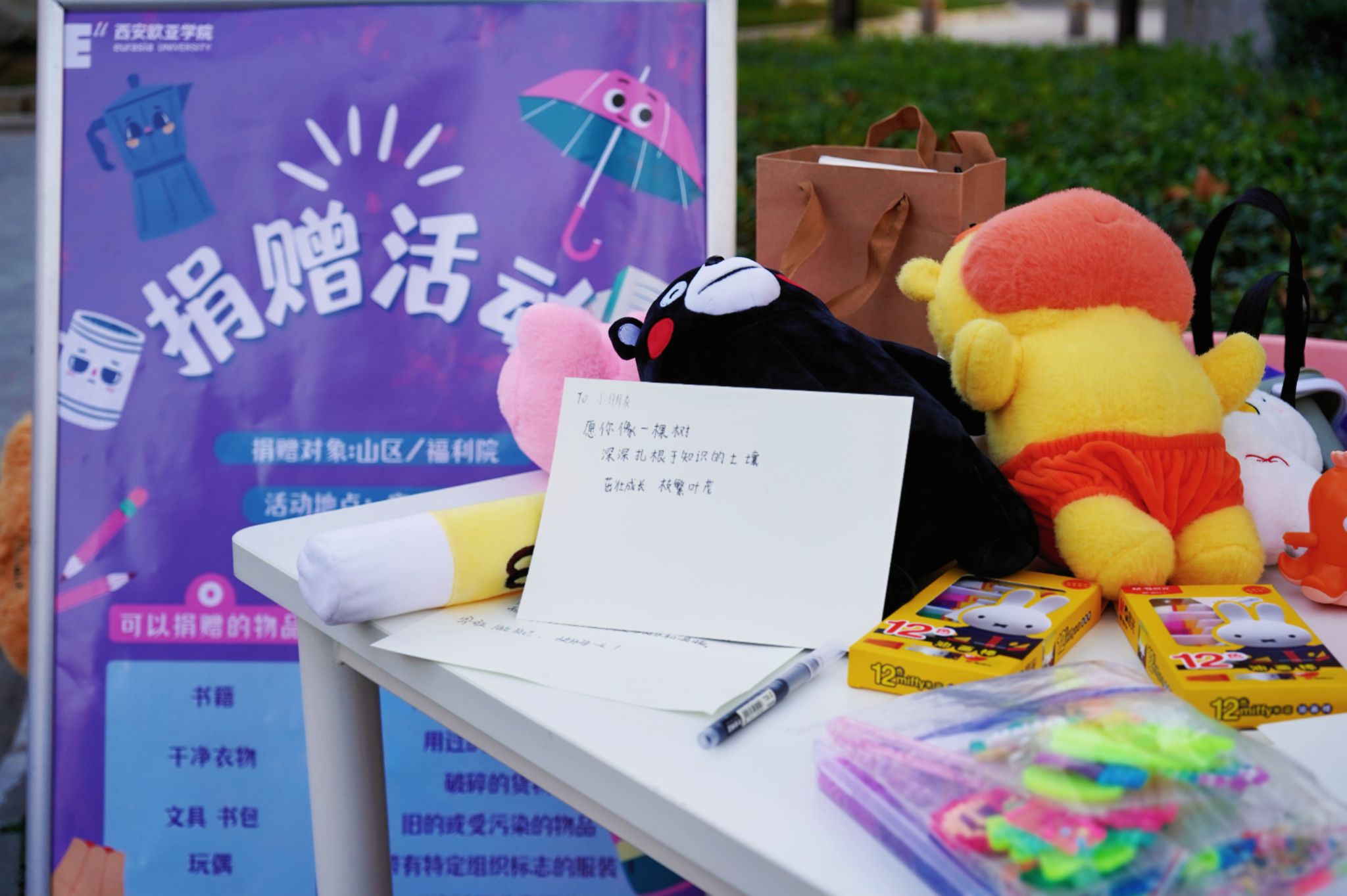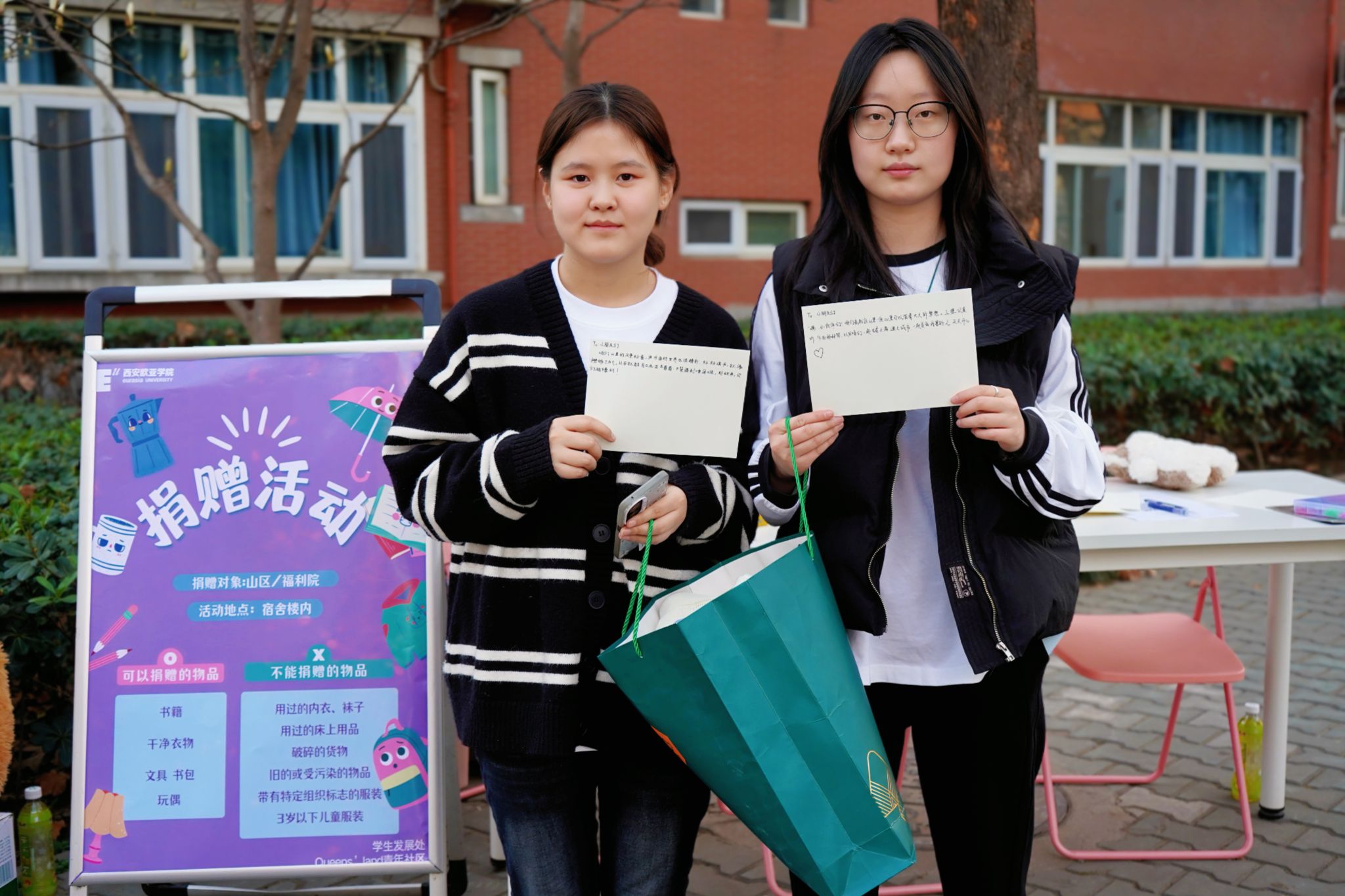 活动前期,青年社区通过企业微信群、宿舍走访等方式广泛宣传,号召学生们捐赠闲置干净的衣物、学习用品、书籍。活动现场,友TA志愿服务队的志愿者们早早准备好储物箱在宿舍楼门口等候,学生们热情参与,有人带来崭新的画板画笔画纸套装,说“想让他们画出春天的颜色”;有人送来洗得松软的毛衣,特意标注“这是我去年的新年衣服,很暖和”;还有人带来了毛绒玩偶,希望能给孩子们带来快乐。