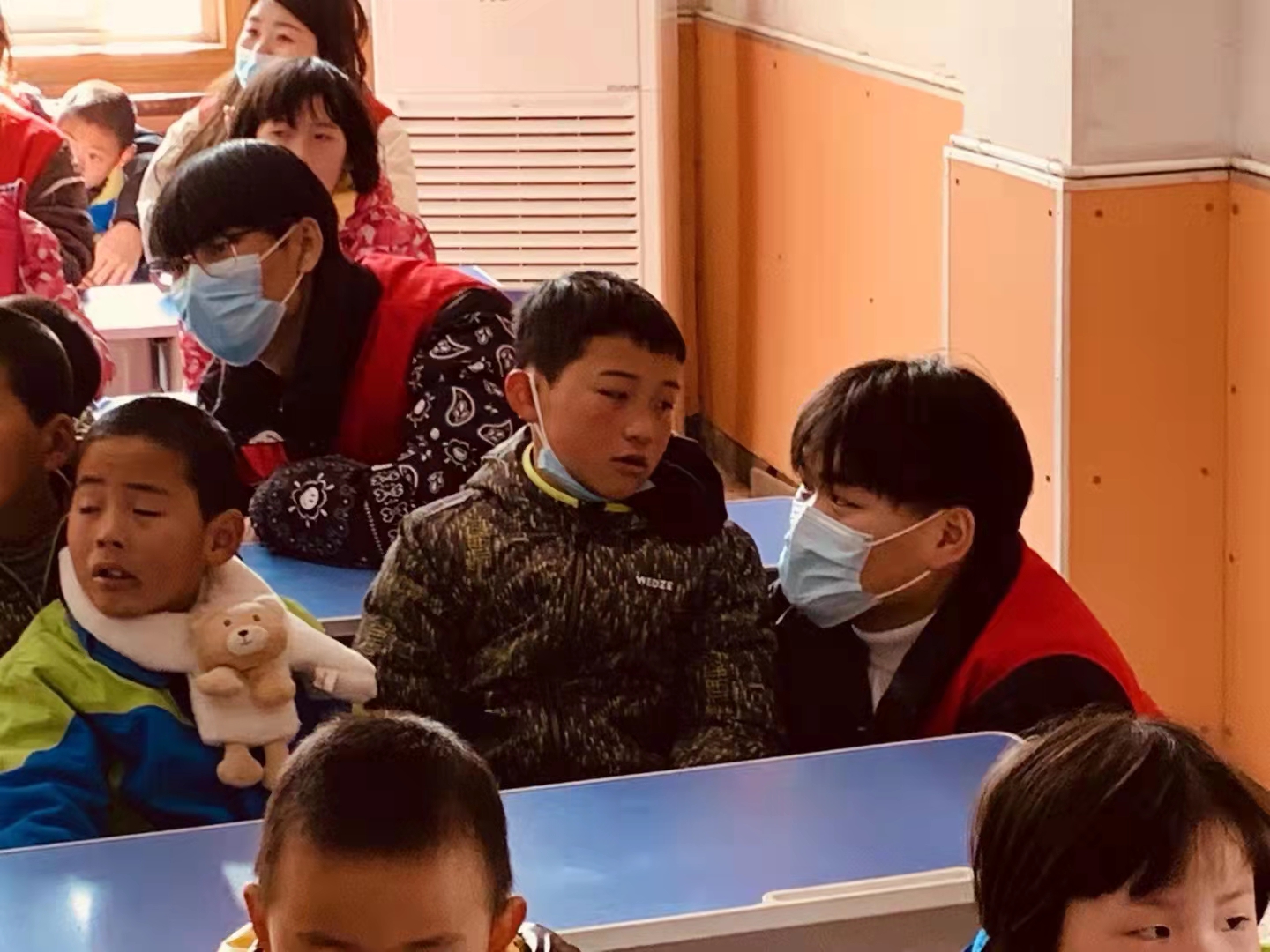 初到东周儿童村,为了让小朋友们尽快活跃起来,志愿者们带领小朋友进行了“我们是快乐的一家人”、“木头吟诗”等一系列趣味游戏,每位小朋友都参与其中,现场气氛也逐渐活跃了起来,小朋友与志愿者们也逐渐熟悉了起来。
