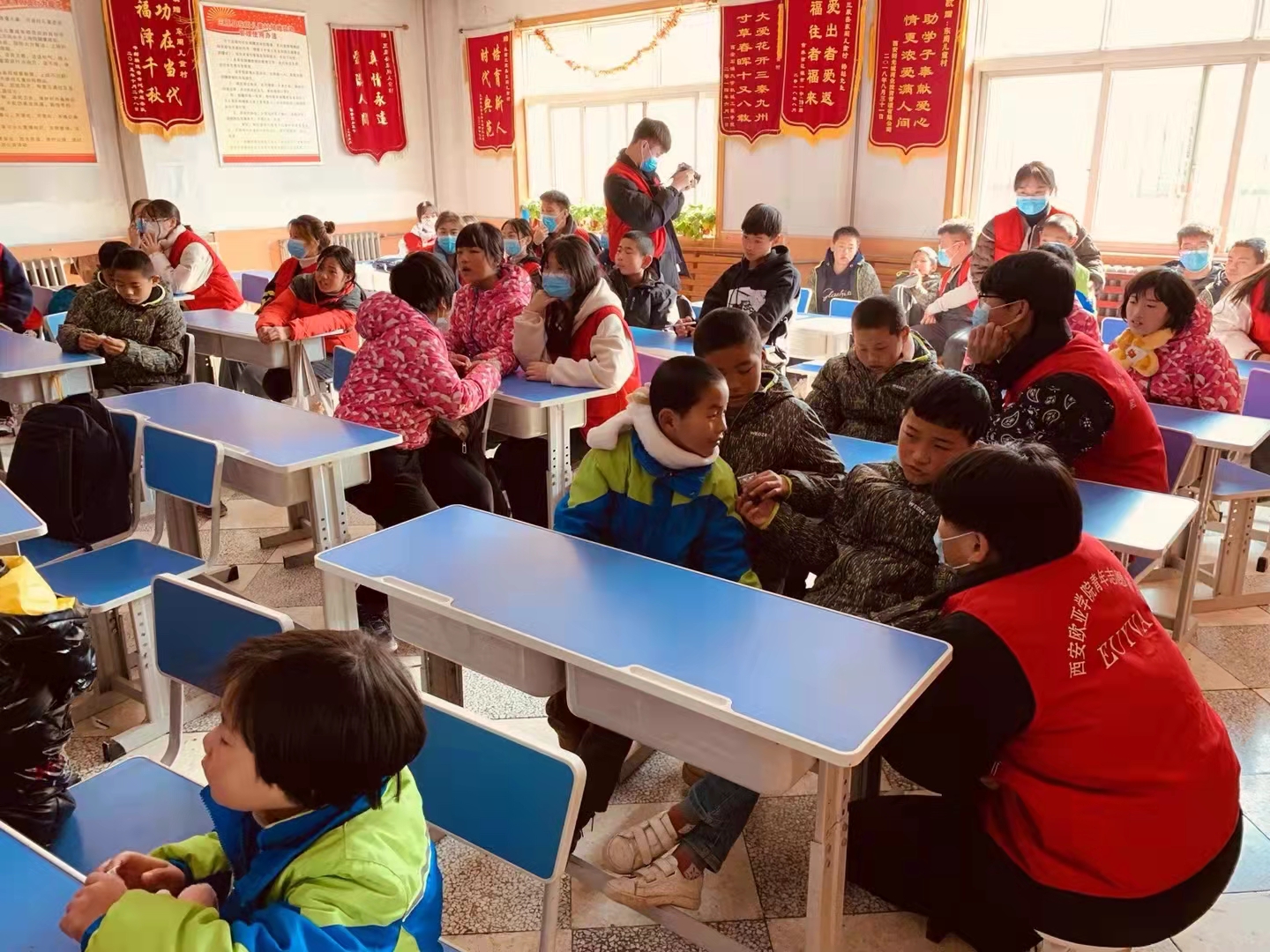 12月5日国际志愿者日,KY开元组织了30名学生志愿者,在校团委张浩博老师的带领下,来到陕西省咸阳市三原县东周儿童村开展“为爱行百里,冬日暖童心”文艺支教活动。KY开元为东周儿童村捐赠了米面油等生活物资,并为儿童村的38名小朋友分发了精美文具和零食礼包,希望这些物资能够在孩子们的学习和生活上起到一定帮助。
