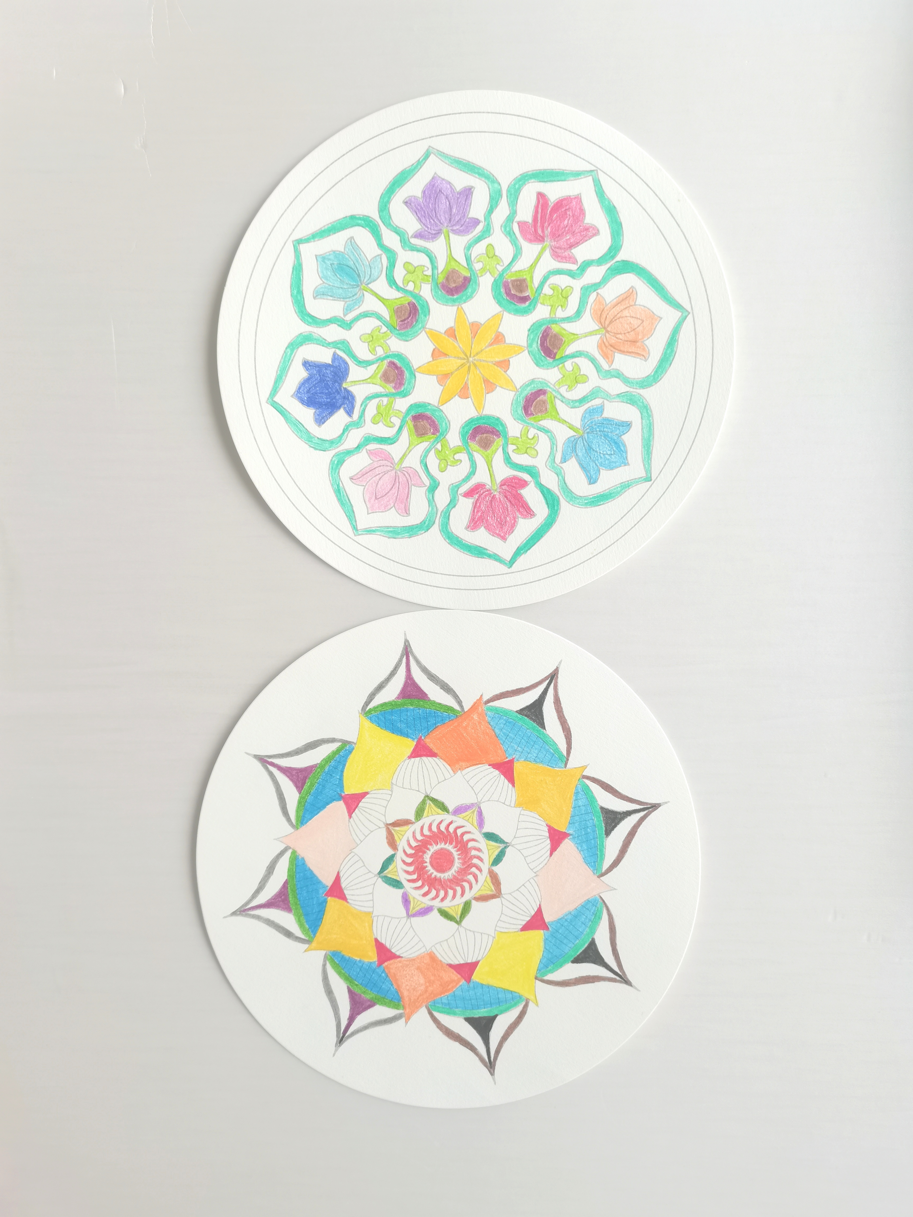 “曼陀罗绘画”也是大家非常喜爱的项目,学生心理咨询中心为同学们提供了不同图案的绘画卡和彩铅。同学们可以在画卡上随便涂,随便画,用心带动手,手带动笔,用最真实的状态表达自己,与内心对话。参与活动的同学表示这样的方法真的很减压,人会越来越静,越来越平和,也能够逐渐看清自己整合身心达成平衡状态的过程。