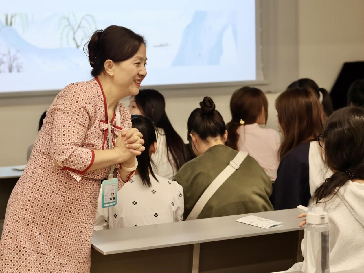 (图一)学生心理咨询中心主任万红带领学生进行互动体验