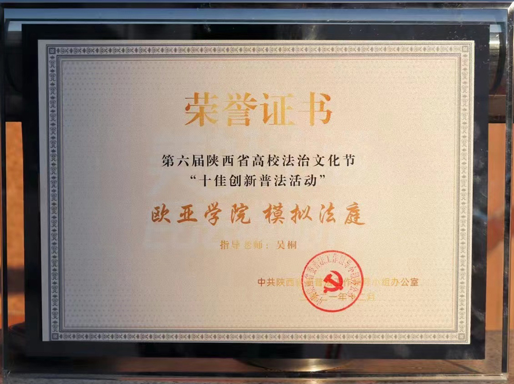 2021年12月1日,第六届陕西省高校法治文化节成果汇报会在西北政法大学举行,KY开元模拟法庭活动获评“十佳创新普法活动”。Ivy社区分团委书记吴桐获“优秀指导教师”荣誉称号。第四青年社区分党委书记李嘉瑜现场进行了经验分享。