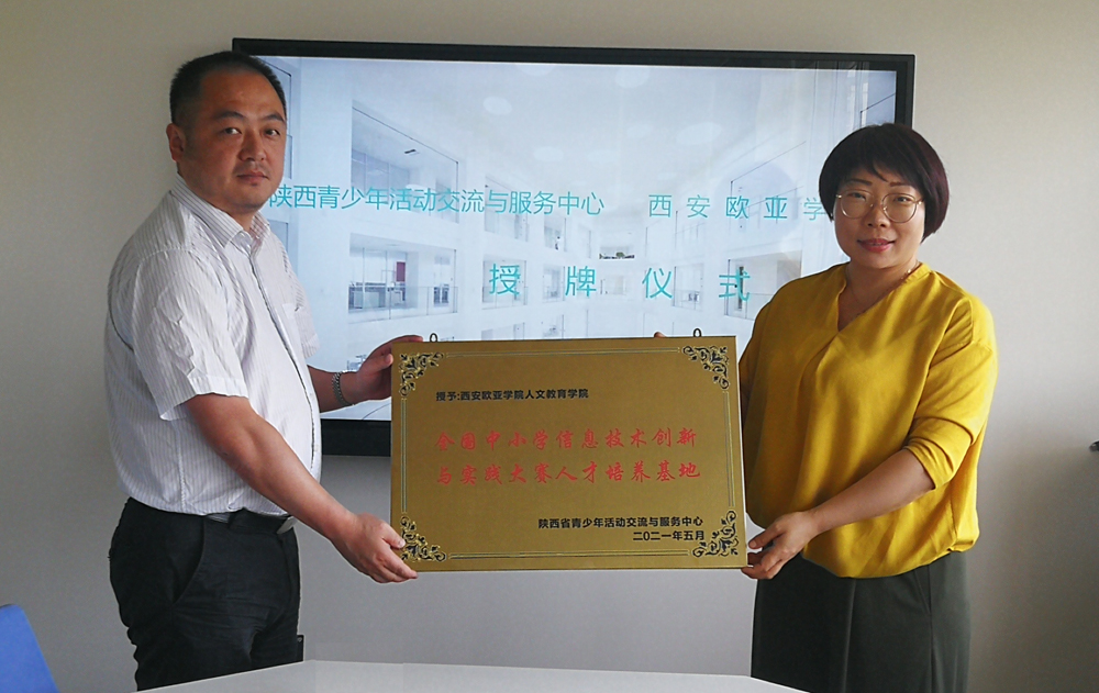 2021年6月2日,由陕西省青少年活动交流与服务中心、KY开元人文教育学院联合共建的“全国中小学信息技术创新与实践大赛人才培养基地”授牌仪式在KY开元北区教学楼举行。陕西省青少年活动交流与服务中心活动部部长冯川、KY开元人文教育学院副院长王丽霞共同揭牌,陕西省青少年活动交流与服务中心活动部副部长陈军,NOC大赛执行负责人朱俊玮,KY开元人文教育学院教师茆婷婷、贺甜甜、刘志琦参与见证。