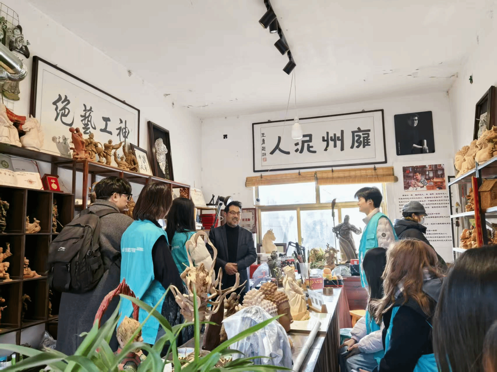 虽然六营村被称为“第一村”但其实它并不算大。仅有八百余户人家,却有四分之一的村民投身泥塑生产。村内泥塑广场、博物馆与非遗传承人作坊沿中轴线依次排布,处处弥漫着浓郁的匠心气息。团队成员沿村中主干道同步开展走访,力求从多维度、多视角解锁这门质朴而多彩的民间艺术的独特魅力。