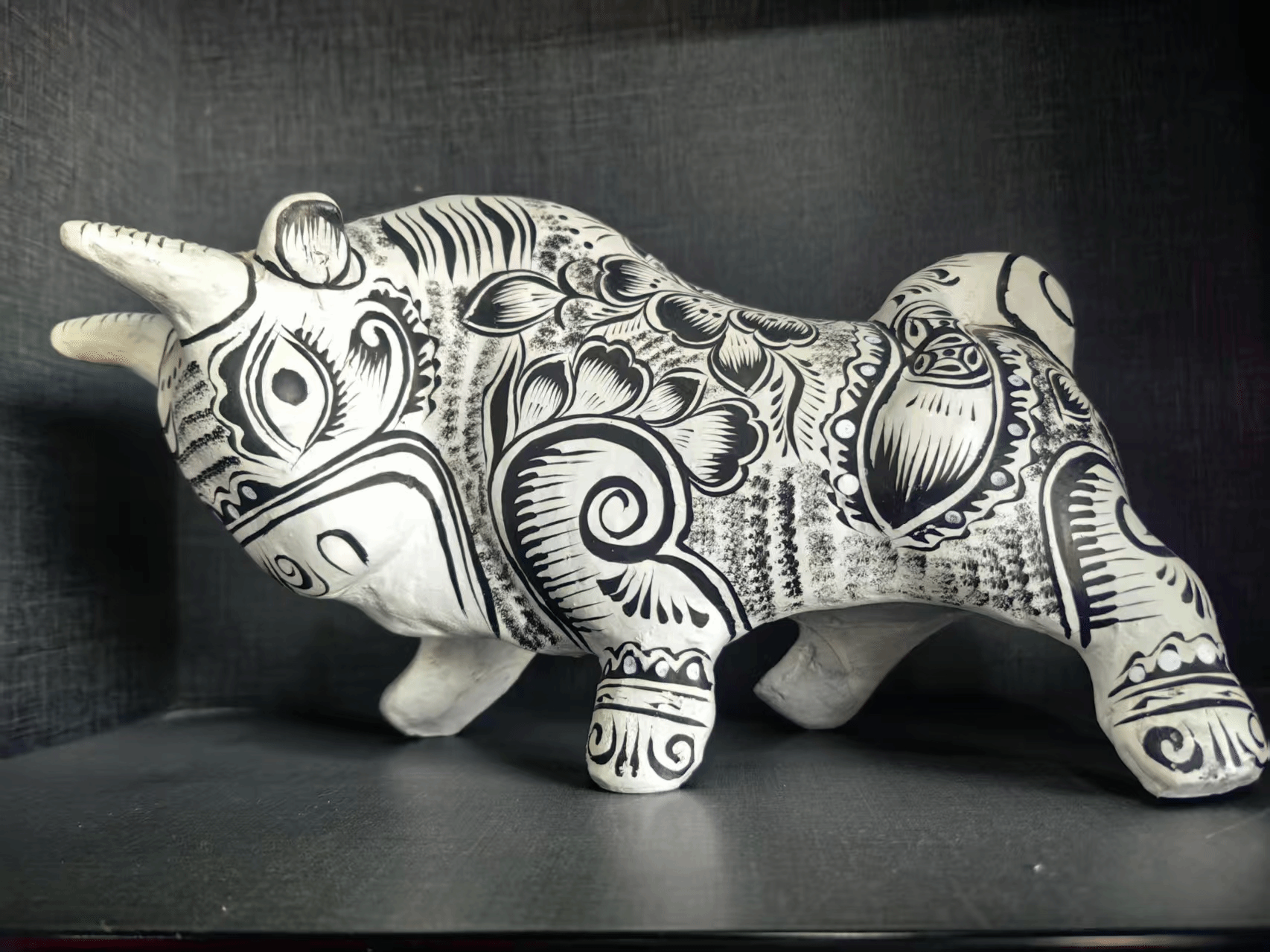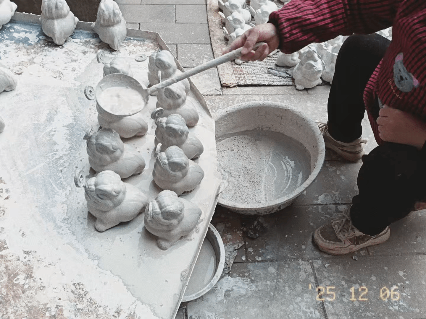 值得一提的是,凤翔泥塑那层特殊的白色底色并不是油漆,而是工艺中的一道独特步骤,名为“缝货”。匠人将观音土、骨胶和清水按照特定比例调和,后浇淋在泥塑表面,这一步骤需要反复进行三次,最终才能呈现出凤翔泥塑那独具特色的洁白外表。
