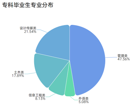 2025届专科毕业生共984人,涵盖5大类别16个专业,其中管理类毕业生466人,设计传媒类毕业生212人,土木类毕业生176人,信息工程类毕业生80人,外语类毕业生50人。