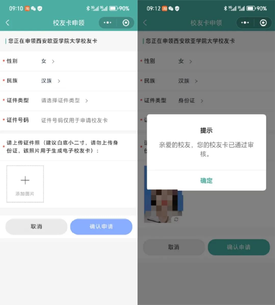 ※【自动通过】请务必填写真实信息,提交后系统会自动与学校数据库匹配,如自动通过可直接进行下一步校友卡办理。