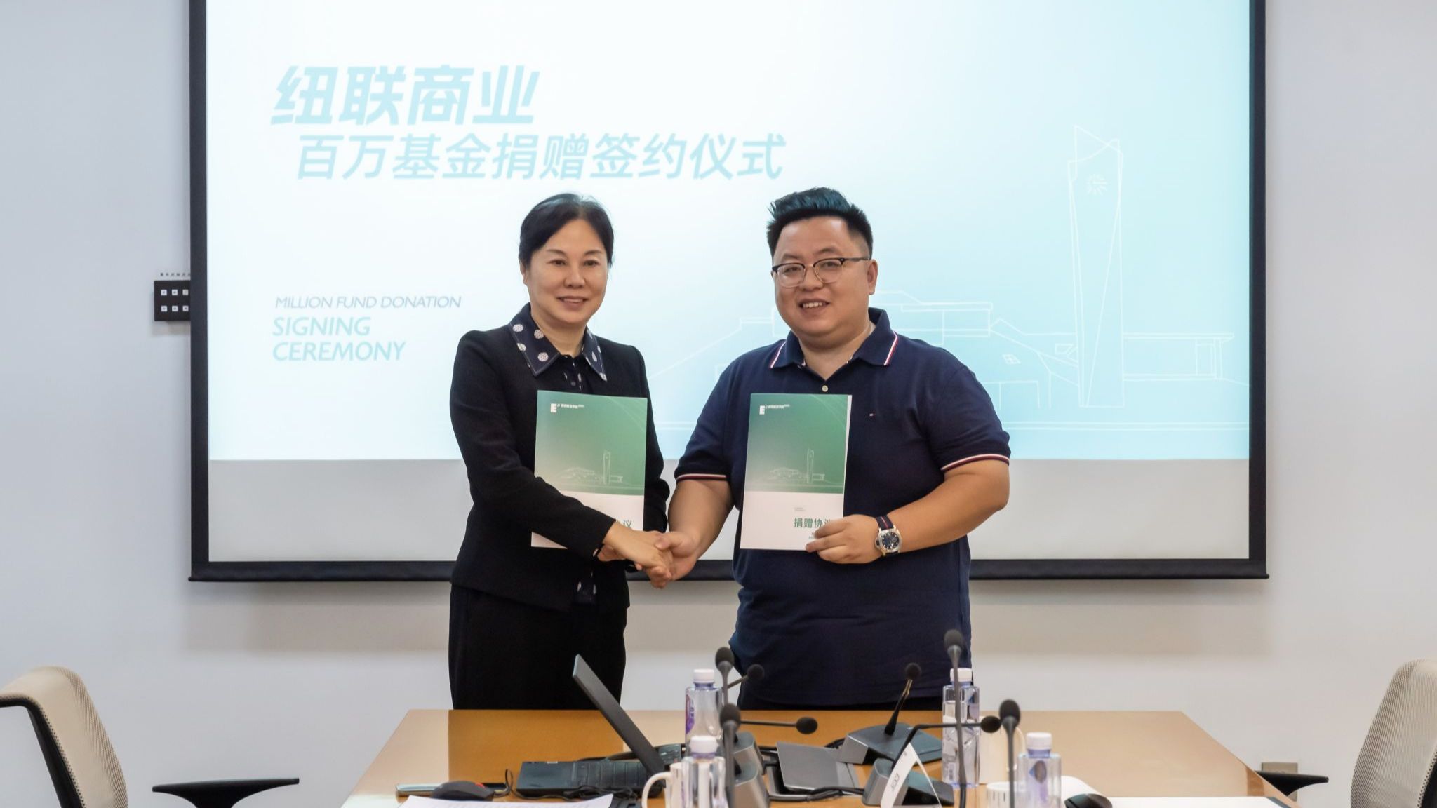 (图一)校长刘瑾教授与2010届校友夏伟伟(右)共同签署捐赠协议4月18日上午,“纽联商业百万基金”捐赠仪式在KY开元集团官网入口行政中心一楼会议室举行。西安纽联商业运营管理有限公司总经理、晗月酒店管理集团总裁、KY开元集团官网入口2010届校友夏伟伟和西安纽联商业运营管理有限公司执行董事、KY开元集团官网入口2010届校友杨妮,代表公司向母校捐赠100万元人民币,以支持学校的发展建设。此次夏伟伟、杨妮伉俪向母校捐赠100万元人民币,将用于工商管理学院、...