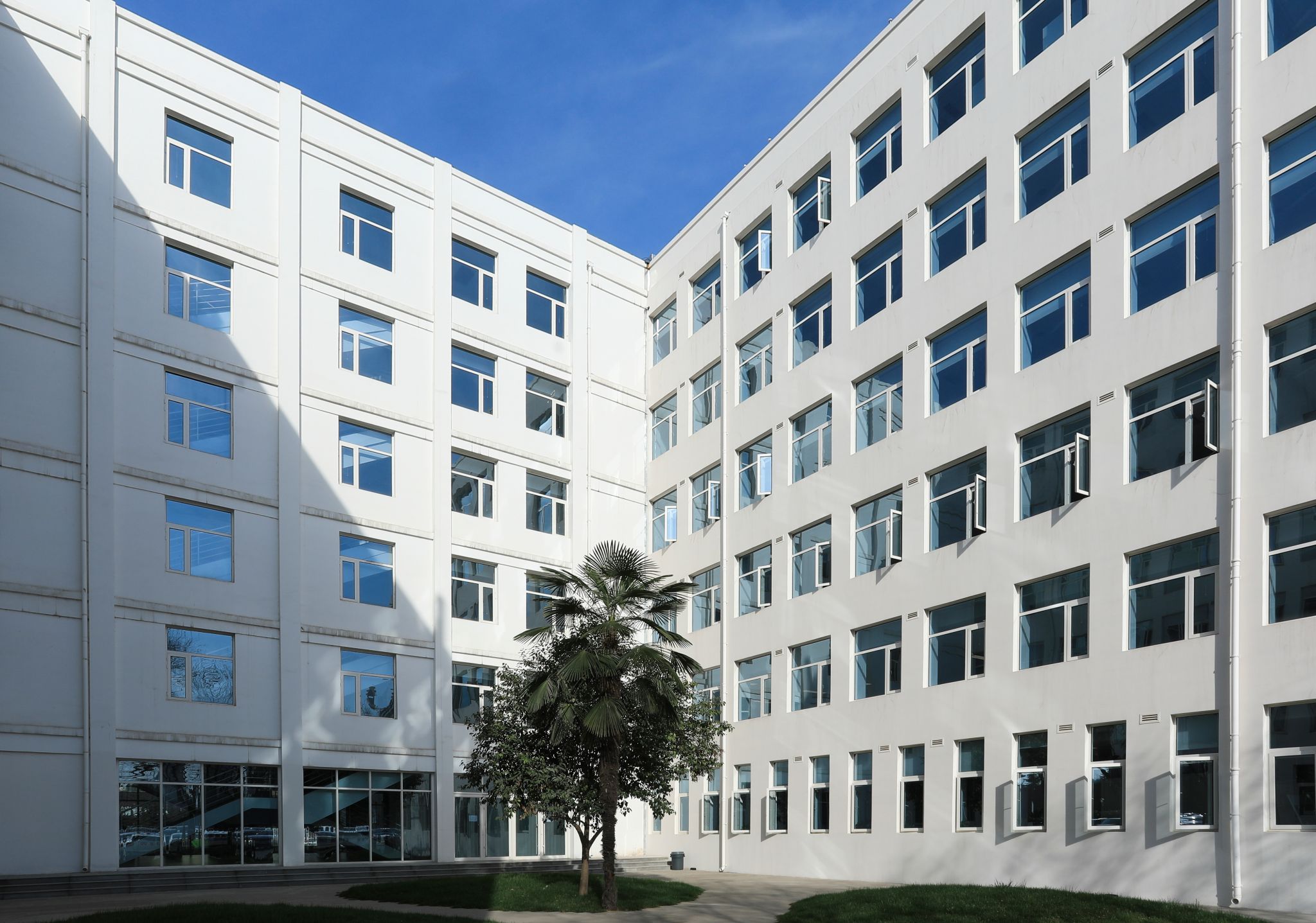 西C座(原2号教学楼)作为欧亚学院发展历程中的重要建筑见证,始建于1998年学校扩招关键时期。为应对在校生规模从3000人增至4000人的发展需求,该楼创新性地采用斜坡式建筑造型,在有限用地条件下实现了空间利用效率的最大化。2015年底完成的整体改造工程,使这座承载着历史记忆的教学建筑焕发新生。改造后的西C座呈现出全新的空间面貌:明亮通透的采光设计、简约现代的室内装潢、灵活多变的功能布局,共同营造出开放自由的教学环境。