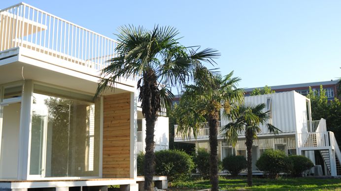 琴岛位于北区教学楼E栋以北,于2015年建成并投入使用。琴岛以6组可移动的集装箱作为主体,共58间房。外立面由玻璃打造,阳光投射进来,人和建筑都温暖而明亮,同周围环境和谐与共。