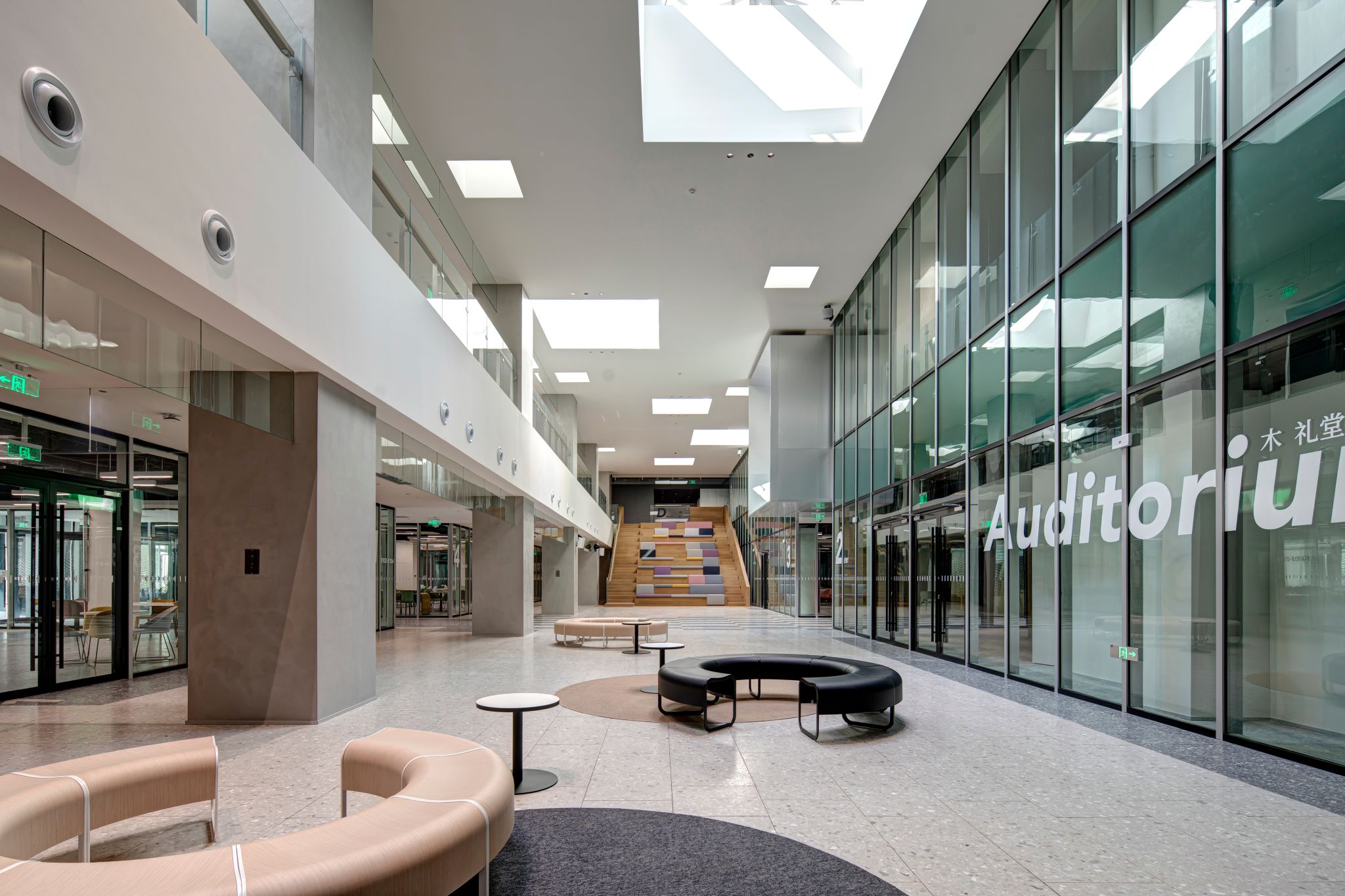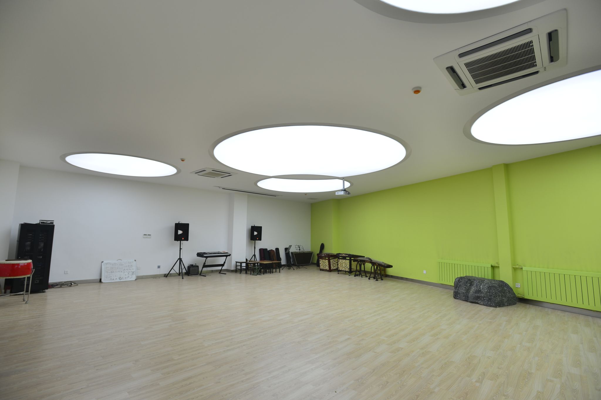 “大活”内设形体训练室、多功能排练厅、声乐训练室、话剧排练室等等,以满足欧亚学子的社团活动需求,公共区域和会议室则多用于举办展览,沙龙、讲座等。先进的活动设施,完备的音响等设备,暖色调的墙面和灯光,让每一位参与者都拥有置身艺术空间的既视感。