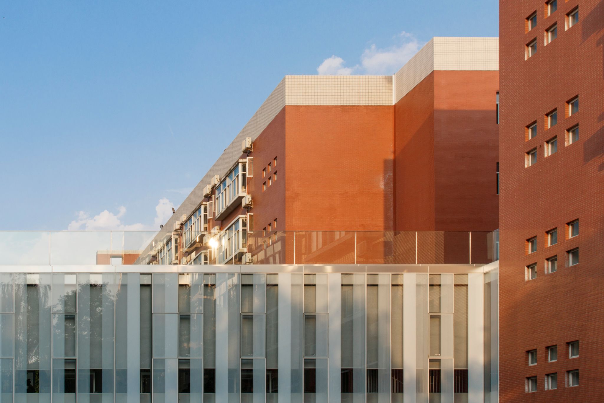 行政中心从2009年10月项目启动,除了邀请原图书馆的设计者、清华大学建筑设计院关肇邺院士担纲设计建设方案,由法国著名设计师stéphane ROUX完成室内设计方案外,还引入台湾设计团队完成空间管理系统Roomis的平台搭建。以砖红为主体色,搭配灰、白、蓝的外立面体现着新工业时代的艺术审美,自然而朴素。位于大厅入口东侧的垂直绿化墙,借鉴世园会立体绿化概念,既丰富了空间结构层次和景观艺术效果,又为建筑本身带来一股生命力。细节处的小心思,...