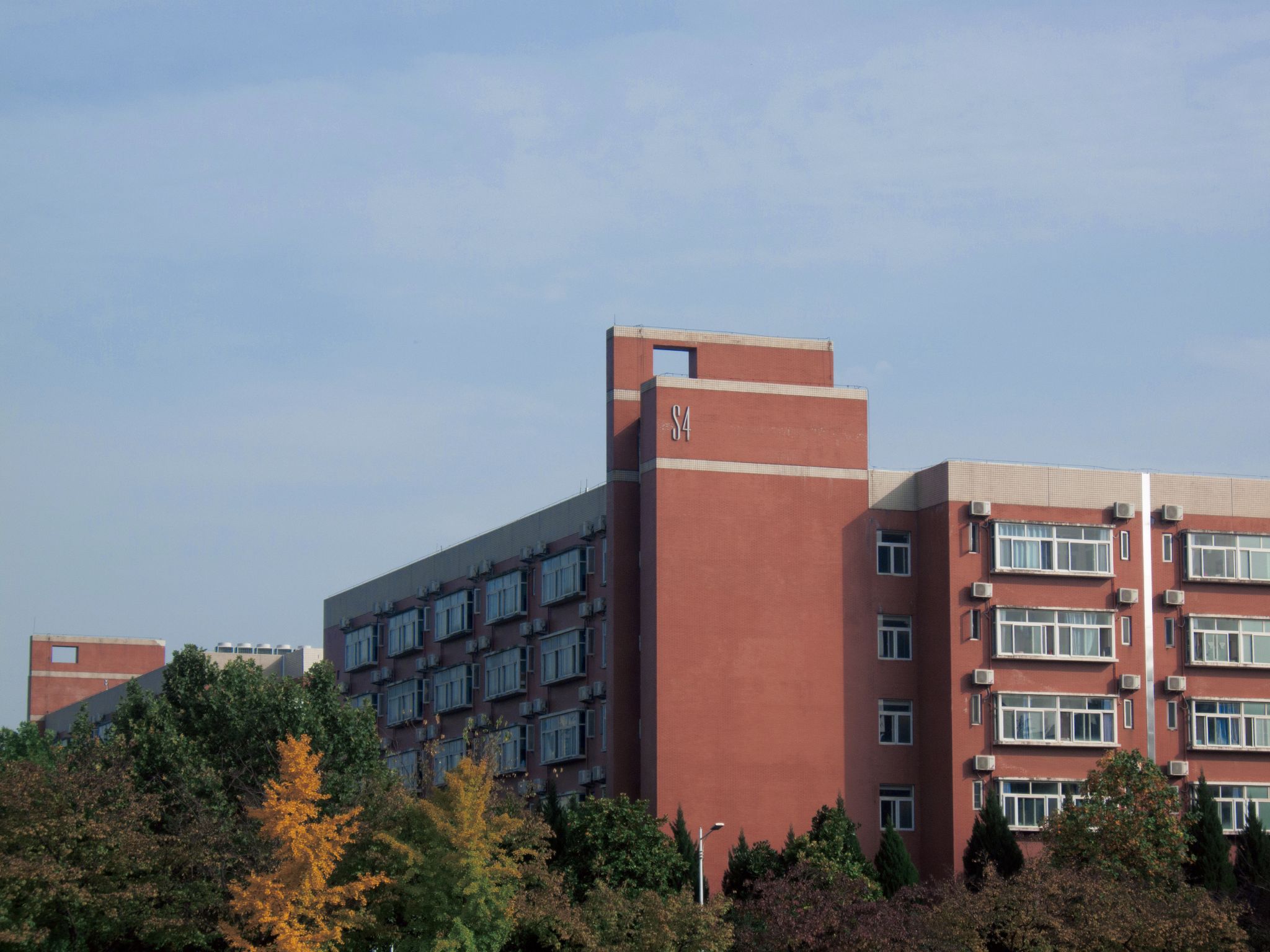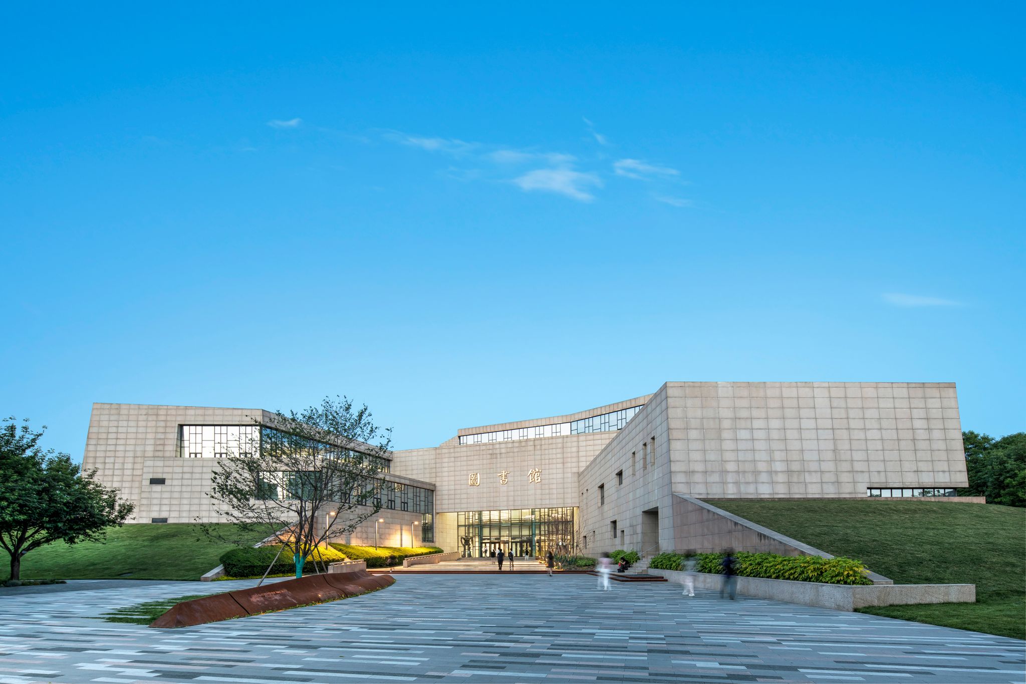 大学生活动中心于2013年启用,为了不对后方景色形成遮挡,遂将其设计成下沉式建筑。