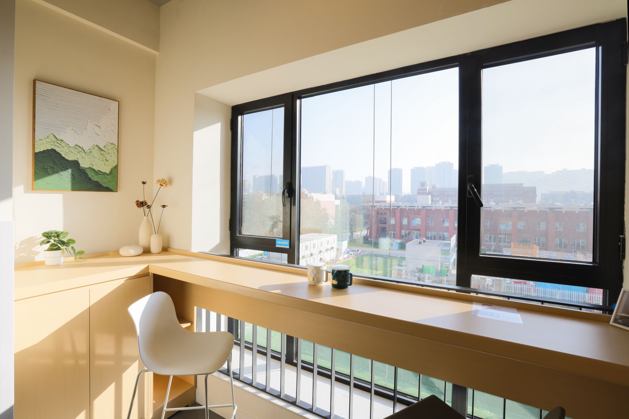 春山里于2025年9月正式投入使用,是集住宿、学习、交流等复合功能于一体的体验式学生服务平台,由澳大利亚DCM建筑事务所龚耕主创设计。建筑高度达72米,地上20层,地下2层,集中提供888套学生公寓,可容纳3000余名学生。地上建筑群由两栋20层学生公寓与一栋2层裙房组成,两栋学生公寓分别命名为“春上”和“山南”,内部以高品质建设标准融合酒店化服务理念,打造四人间和两人间及大堂等舒适生活空间,每层楼还设有公共空间与多功能服务房,包含可用于学习辅导的多功能室、公共洗衣间、卫生间,以及洗衣机、烘干机、洗鞋机等设备;一、二层裙楼设有泡泡空间、木礼堂以及鼓励自由交流的非正式学习区、公共讨论区、校企合作会议室、兼具休闲与展览功能的复合空间以及充满社交氛围的咖啡厅等,讲座、展览、艺术品展陈等活动也在这里发生,激发即兴的交流与碰撞;建筑外侧设有能量广场,绿色生态景观萦绕四周,无论散步、小聚、观察自然还是休闲放松,各种活动都能在这里自然而然地发生,让你恰如其分地融入校园生活。