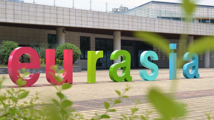 大学生活动中心于2013年启用,为了不对后方景色形成遮挡,遂将其设计成下沉式建筑。“大活”内设形体训练室、多功能排练厅、声乐训练室、话剧排练室等等,以满足欧亚学子的社团活动需求,公共区域和会议室则多用于举办展览,沙龙、讲座等。先进的活动设施,完备的音响等设备,暖色调的墙面和灯光,让每一位参与者都拥有置身艺术空间的既视感。