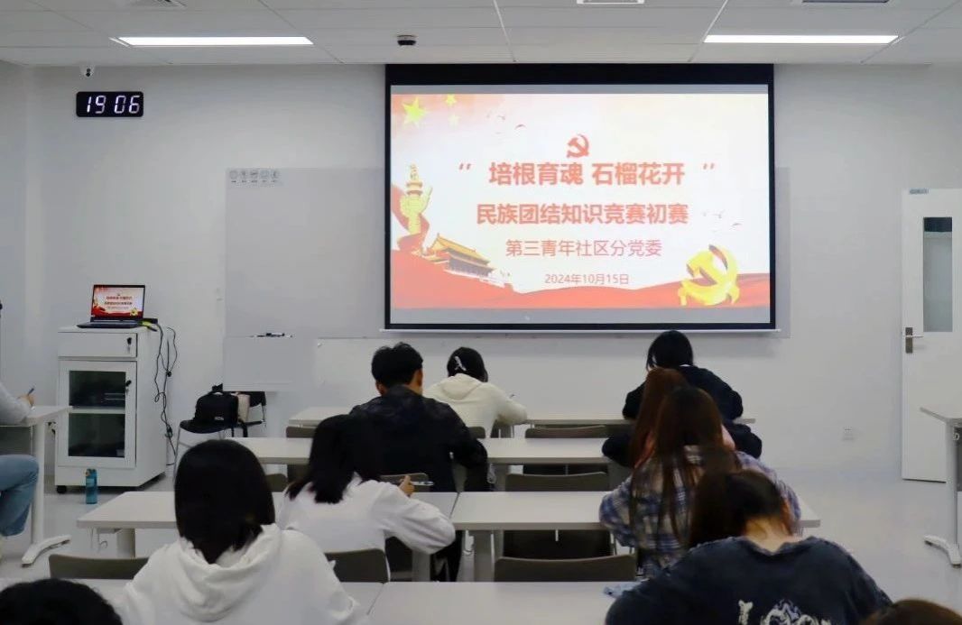 为进一步促进在校大学生对民族知识的学习和了解,筑牢中华民族共同体意识,第三青年社区分党委于2024年10月14-18日举办了一场精彩纷呈的民族团结知识竞赛。本次竞赛共分为初赛和决赛两个环节。第一环节:初赛选拔自10月14日民族团结知识竞赛活动发布以后,共有123名学生报名参赛。第三青年社区分党委对报名的同学进行了理论知识测试。经过笔试选拔,最终有9个小组、27名选手成功晋级决赛。第二环节:决赛竞技10月18日,第三青年社区分党委民族团结知识总决赛在北E-...