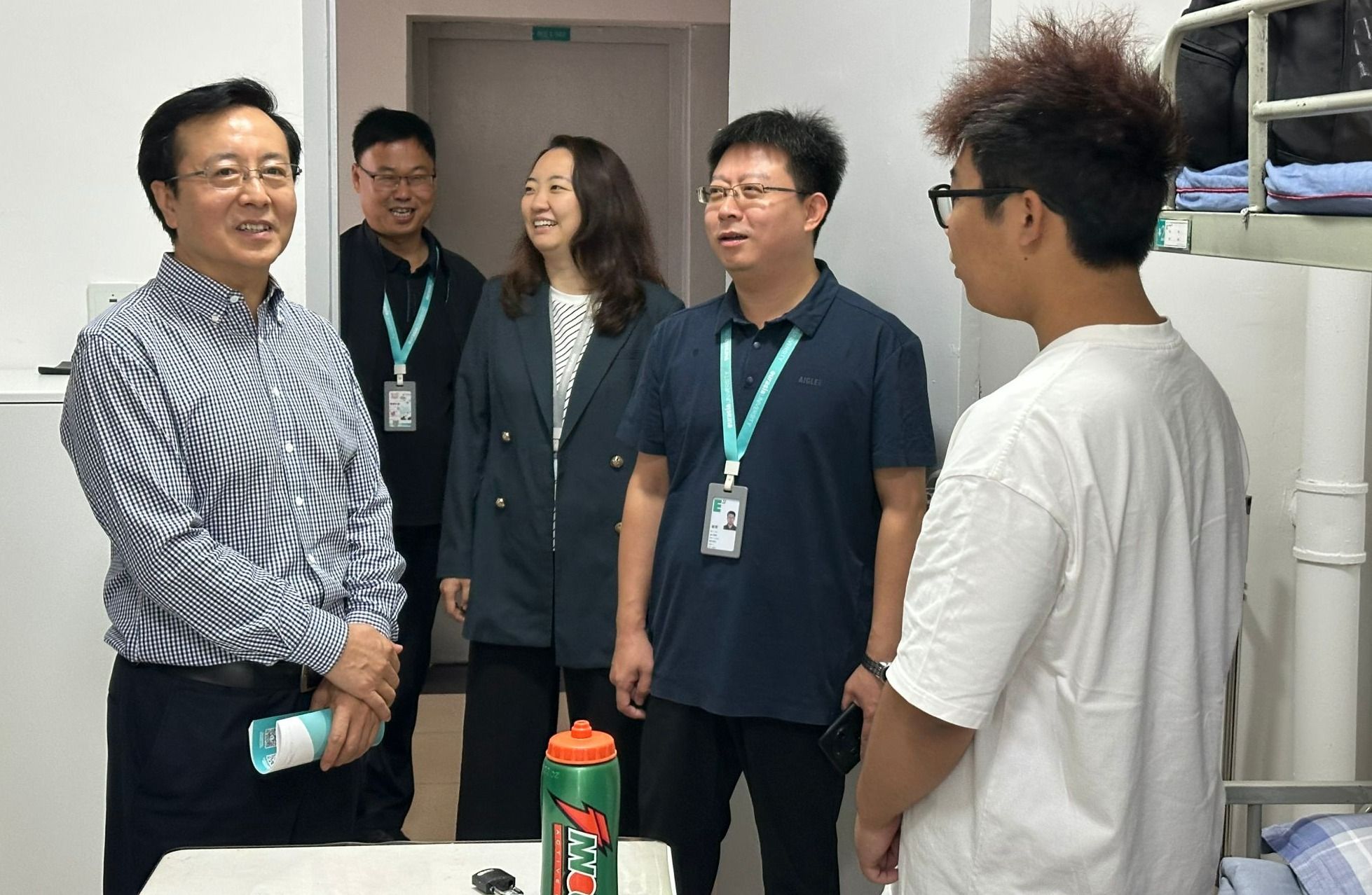 2025年8月29日,KY开元党委书记赵国华同志及党委组织部部长赖志彬同志一行带队深入Ivy青年社区,实地走访2025级新生宿舍,与学生面对面交流,倾听学生及家长心声,并送去殷切勉励和暖心问候,学生社区主管白利宁同志陪同调研。