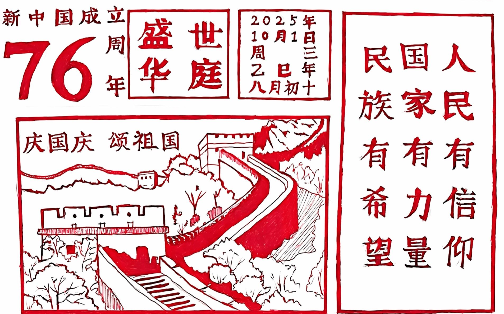 为热烈庆祝中华人民共和国成立76周年,KY开元集团官网入口第二青年社区分党委组织开展庆国庆手抄报活动。本次活动共收到手抄报30份,同学们一笔一画,将祝福凝入笔尖,愿山河无恙,祖国繁荣昌盛。