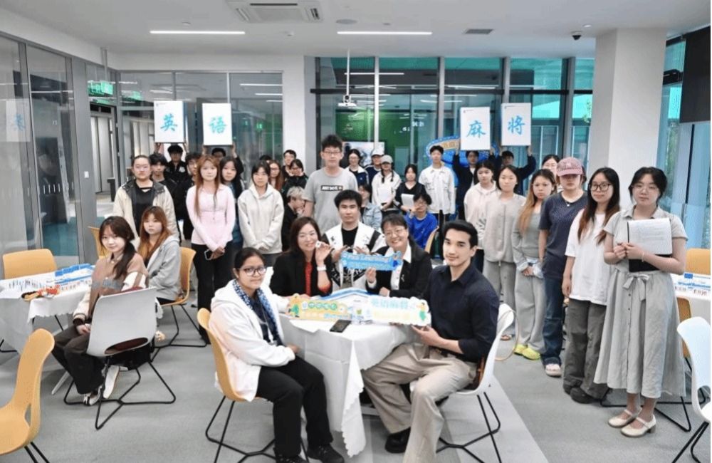4月8日,国际青年社区举行英语麻将活动,本次英语麻将融入四川麻将玩法,学生组合出有效的英语单词或者句子即可胡牌。